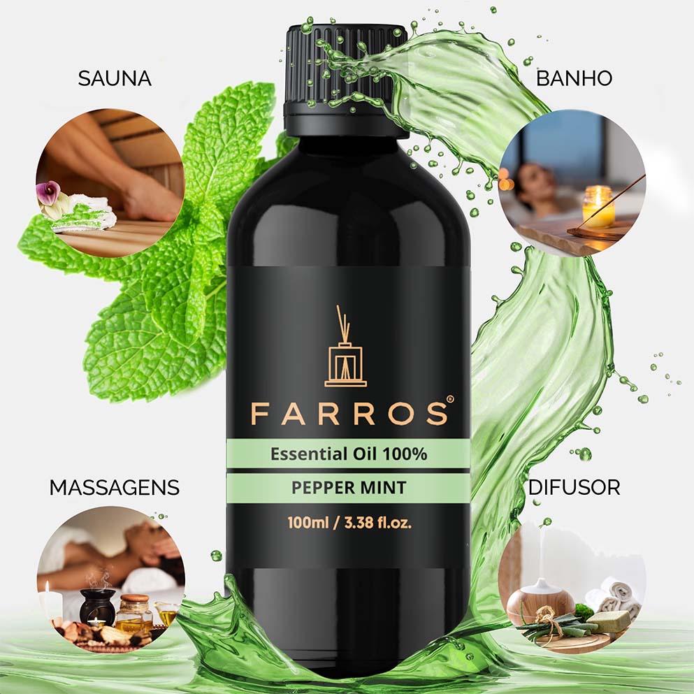 - Óleo de Hortelã-Pimenta: Refrescante e alivia dores de cabeça.